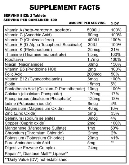 - Take one serving (1 Tablet) of multivitamins daily with meals.